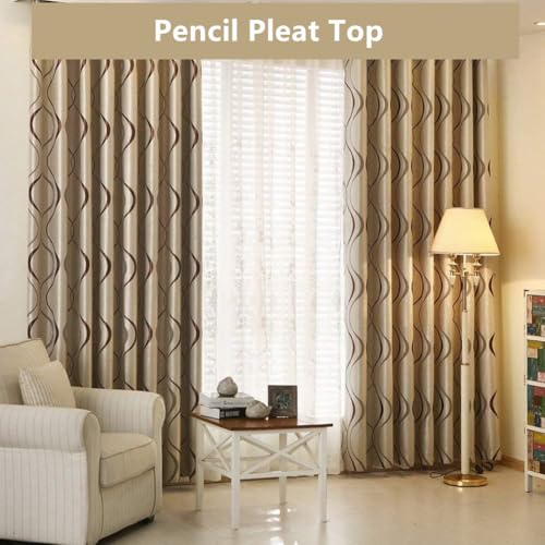 1 Pair Pencil Pleat Curtains for Living Room Modern Striped Curtains for Bedroom (66×72 Inch,Coffee)