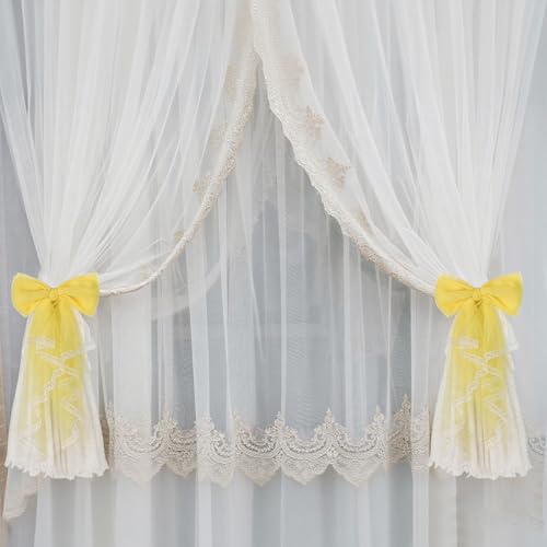 sourcing map 2 Pack BowKnot Curtain Tiebacks, Lace Bow Curtain Tiebacks Drape Holder Elegant Decorative Tie Backs French Bow Decorative Rope Accessories for Home Office Decorative, White