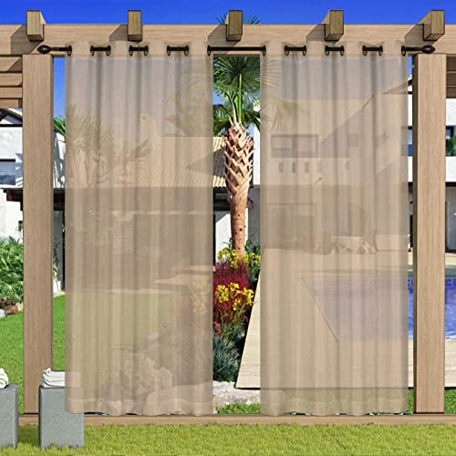 2 Panels Waterproof Outdoor Sheer Curtains Rustproof Grommet Light Filtering Drapes for Front Porch GazeboKhaki 52×36 inches (WxL)