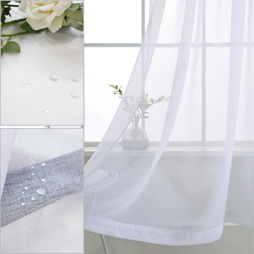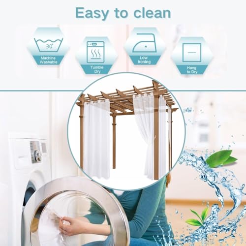 2 Panels White Outdoor Sheer Curtains For Patio Waterproof 132 * 213cm 132 * 243cm 132 * 274cm Sheer Curtains For Pergola, Porch, Cabana And Gazebo Indoor, Outdoor Voile Sheer Drapes(132 * 243cm)