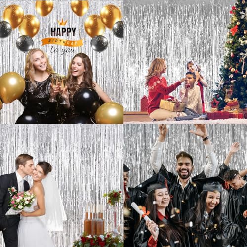 - 【Celebration Party Decorations】You can use this shiny gorgeous tinsel foil fringe background to decorate your celebration party. Hang them on a carpeted end or wall as a backdrop,or it could be one entrance to the party. You can paired with an LED light, balloons, banners and various photo props on this backdrop. All the guests who come to bless you will feel your love and beauty and was remembered for having a great party!