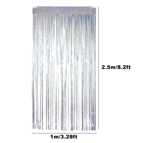 2Pcs 3.2ft x 8.2ft Tinsel Foil Curtains, Metallic Foil Fringe Curtains, Backdrop Curtain Streamers for Party Baby Shower Birthday Bridal Shower Wedding Halloween Christmas (Silver)