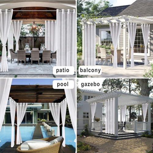 2pcs Waterproof White Outdoor Sheer Curtains Set – Linen Semi Voile Light Filtering Drapes for Patio Gazebo Porch & Balcony Perfect for Privacy & Style