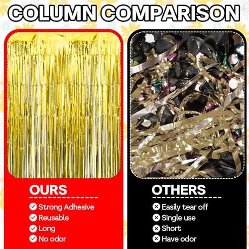 - 3 Pack Gold Foil Fringe Backdrop Curtains 3.2ft x 6.5ft Backdrop Party Decorations Photo Booth Streamer Backdrop Tinsel Streamers Birthday Party for Graduation Shower Gender Reveal Disco Bachelorette