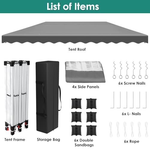 3m x 6m Pop Up Gazebo with 4 Side Walls, Waterproof Party Tent with Thick 420D Oxford Fabric, UV Protection 50+, Event Shelter with Carry Bag & 6 Sandbags for Weddings & Garden Parties, Grey