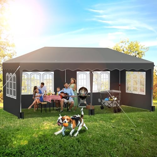 - MULTI-PURPOSE: This waterproof party tent features transparent windows on all sides, offering excellent ventilation and natural light during warm weather. You can enjoy the beautiful surroundings through the windows, making it ideal for gardens, terraces, flea markets, weddings, birthday celebrations, beaches, camping, and other outdoor activities.