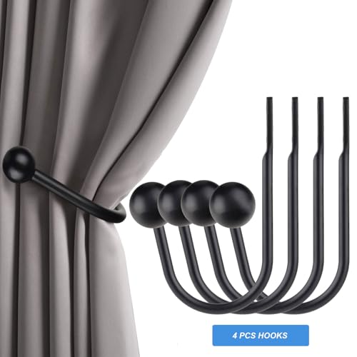 4 Pack Curtain Tie Backs Hooks, U-shaped Black Drapery Holdbacks, Elegant Curtain Tiebacks with Screws, Decorative Metal Tie Back Hooks, Wall Mounted Curtain Holders for Curtain, Clothes