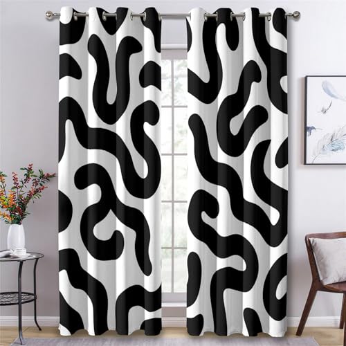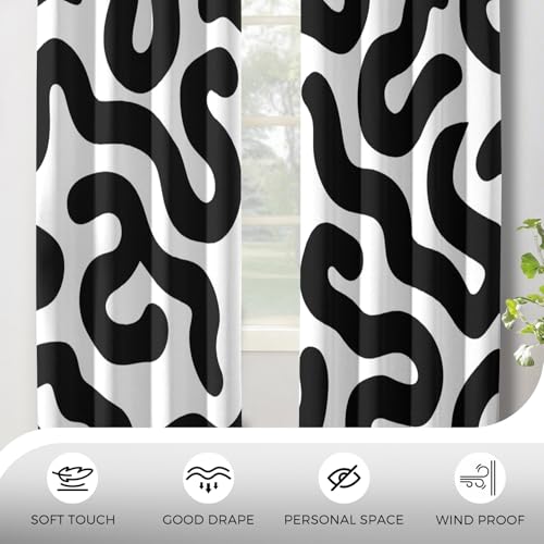Abstract Black Wave Curtains for Bedroom Living Room, Modern Minimalist Blackout Curtains Eyelet 54 Drop 2 Panels, Patterned Window Drapes, Home Decor 46×54 Inch B-D16