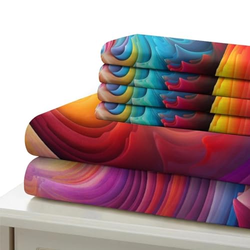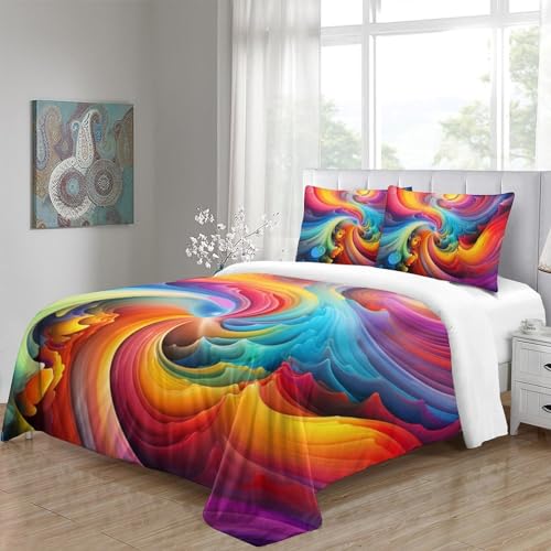 Abstract Rainbow Duvet Cover Set 3D Bedding Sets Microfibre Quilt Cover with Zipper Closure 3 Piece Set Comforter Cover King(220x240cm)