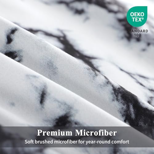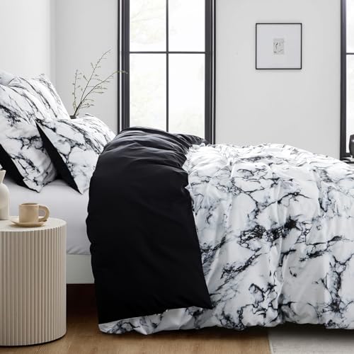 Aisbo Double Bedding Duvet Cover Sets – 3 Pieces Marble Bedding Set Black and White, Soft Brushed Microfiber Double Bed Quilt Cover with 2 Pillowcase, 200×200 cm