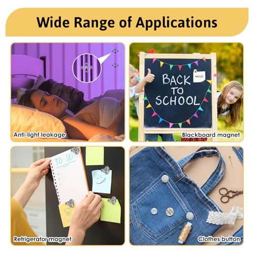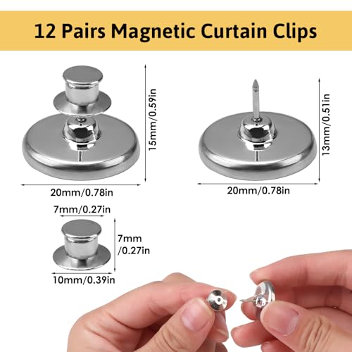 - Quick and Tool-Free Setup in Seconds – Forget complicated installations! These magnetic curtain clips can be set up in mere seconds without any tools. Simply press the cap clasp, insert the needle into the fabric, and snap the back plug in place. This user-friendly design of magnetic curtain buttons allows you to secure your curtains with minimal hassle, whether at home or on the go, ideal for travelers seeking portable light-controlling solutions.