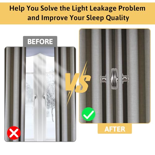 - Double-Sided Magnetic Strength for Superior Light Blocking – Our enhanced magnetic curtain clips showcase double-sided magnets that securely retain your curtains, averting light leakage and ensuring optimal privacy. With a more powerful magnetic grip than conventional single-sided clips, these round magnetic curtain clips create a flawless seal, keeping your space dark and tranquil. Perfect for bedrooms, offices, and any area where controlling light is vital.