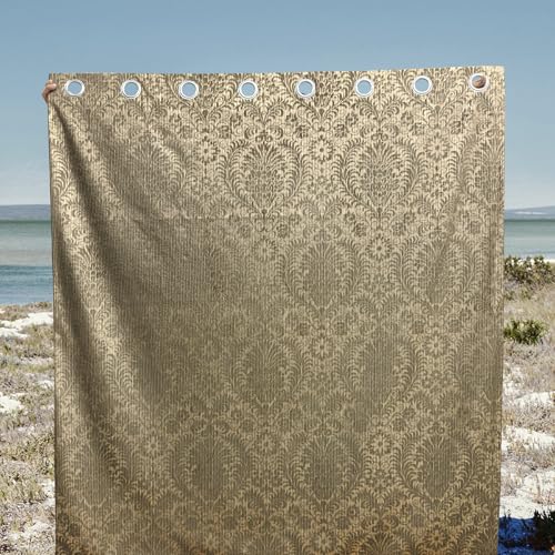 always4u 100% Blackout Damask Foil Print Champagne and Gold Ridged Velvet Curtains 108 Inches Long Drapes 2 Panels Shiny Metallic Window 54 * 108 Inches