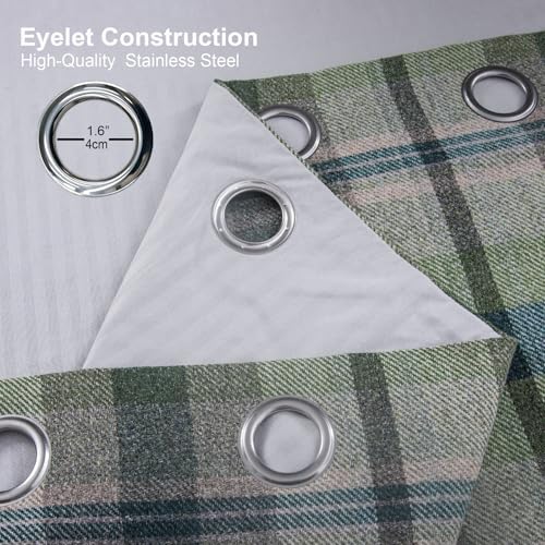 always4u 100% Blackout Tartan Curtains Highland Check Eyelet Curtain Woolen Look Plaid Brushed Cheque Pair of Window Treatment for Bedroom Living Room Green 66 * 72 Inches