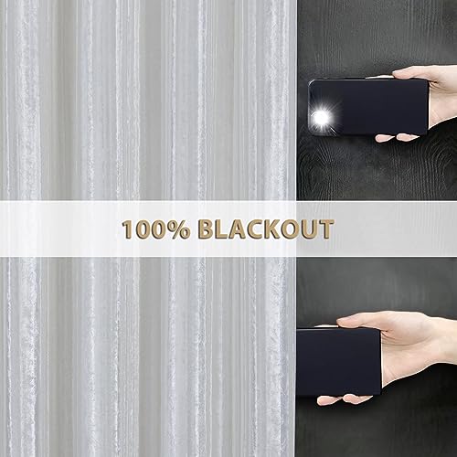 always4u Crushed Velvet Curtains Blackout 90 Inch Drop Luxury Curtains For Bedroom Soft Thermal Fully Lined Window Drapes Living Room 1 Pair White 90 * 90 Inches