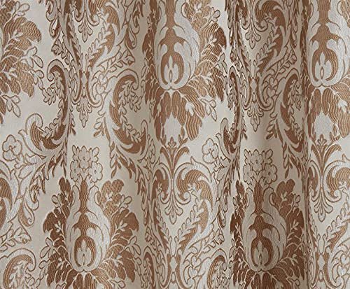 Amania Trading Ltd 1 Pair Of TEGOLA Demask Jacquard Taped Top 3" Pencil Pleat Header Lined Curtains – LATTE – 46" Width x 72" Drop