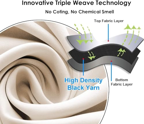 - Blackout Material: Blackout eyelet curtains are crafted from high-quality polyester and smooth touching material, perfectly stitched that provide exceptional durability and light-blocking capabilities. The innovative triple- weave fabric is designed to withstand everyday use while maintaining its functionality and appearance.