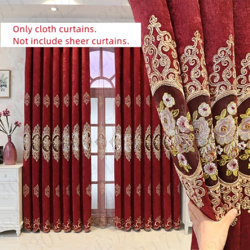 Amidoudou Pencil Pleat Curtains 1 Pair European Luxury Hollow Drapes Embroidered Chenille Curtains for Living Room Bedroom (Red,66 x 84 Inch)