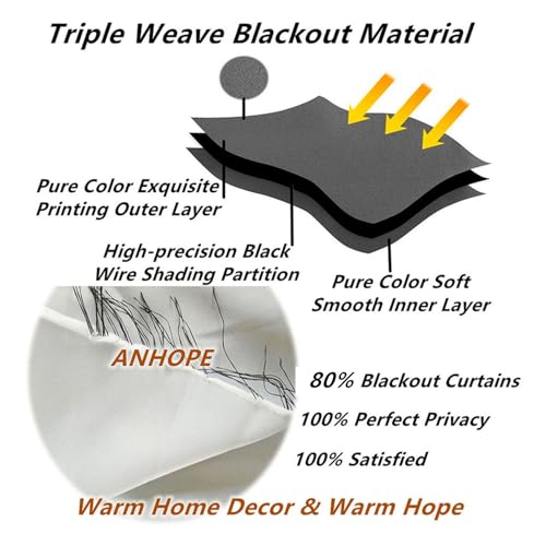 • About ANHOPE Printed Curtains: Advanced printing technology makes the fabric have high color fastness. In long-term use and washing is not easy to fade, and keep the color bright. Perfect color matching, beautiful and vivid patterns, and clear and realistic printing to make any space an ideal place to enjoy a good time