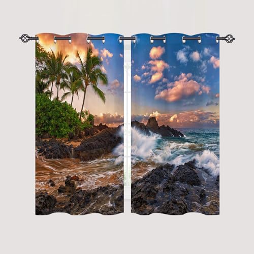 ANHOPE Tropical Ocean Beach Wave Curtains Eyelet Ring Top Blackout Thermal Insulated Print Curtains Soft Privacy Decorative Window Treatment Drapes for Bedroom Living Room 28 x 54 Inch 2 Panels