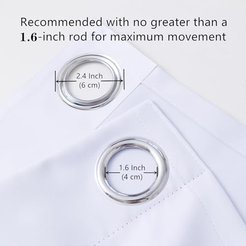 - What You Get: 2 panels per package with eyelets. Each panel is 28" width x 54" length (71cm x 138cm), total size: 56"W x 54"L (142cm x 138cm). Each panel has 4 metal grommets on top. Recommended with no greater than a 1.6-inch rod for maximum movement