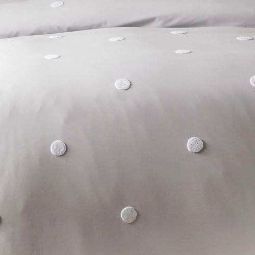 Appletree Signature Duvet Cover Set Super King – Dot Garden Design – 100% Cotton Bedding – White with Silver Polka Dots – Includes 1 Duvet Cover (260x220cm) & 2 Pillowcases (50x75cm)