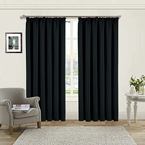 Aspire Homeware Blackout Curtains for Living Room Pencil Pleat Black Bedroom Curtains Window Treatments Pair of Thermal Tape Top 46 x 54 inch Drop Short Kitchen Curtain Pair Panel + Tie Backs