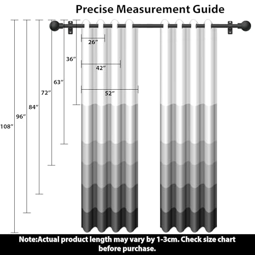 - [PACKAGE CONTENTS]: 2 burnt orange panels printed window curtain in package. Each panel measures 26 "W x 36 "L (132x160cm)/52 "W x 63 "L (132x160cm)/52 "W x 84 "L (132x213cm)/52 "W x 96 "L(132x244cm). Each panel has 8 silver metal grommets, inner diameter of grommet is 1.6(4cm)inch , fit well with standard or decorative curtain rods.