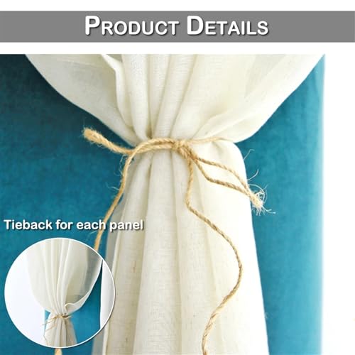 ATEUXOL Pergola Curtain Cream Flax Yarn Linen Window Drapes Patio Outdoor Voile Sheer Curtains Panel Party Wedding Decor Rod Pocket Pergola Net Curtains(2 Panels,130x100cm)
