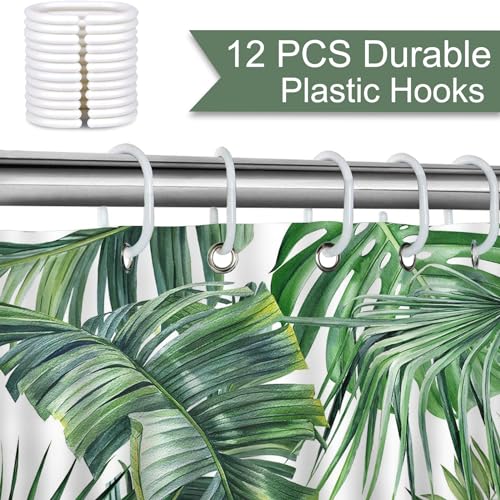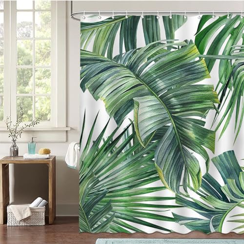 Avezano Tropical Leaves Shower Curtain Green Palm Leaf Plant Bathroom Shower Curtain Greenery Tropical Leaves Waterproof Bathtub Curtain Decor with 12 Hooks 72 X 72 Inches