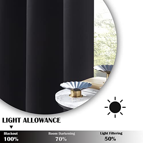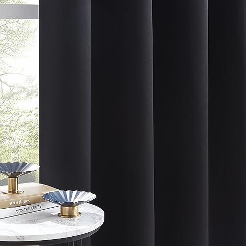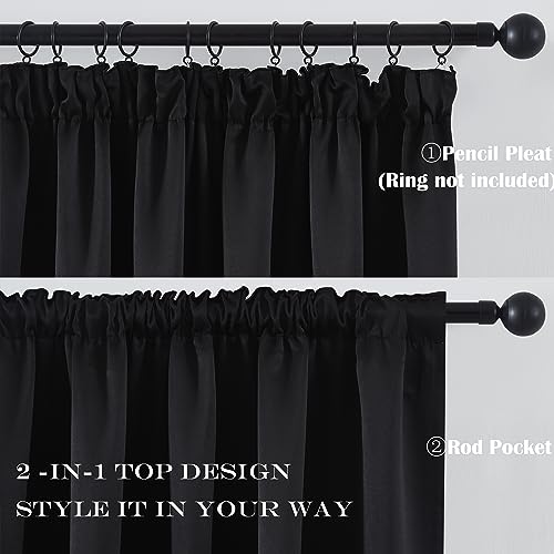 Beauoop Pencil Pleat Blackout Curtains for Living Room 90 inch Drop Black Curtains for Bedroom Rod Pocket Light Blocking Thermal Insulated Drapes Window Treatment 2 Panels, W90 x L90