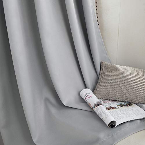 Beauoop Pencil Pleat Blackout Curtains for Living Room 90 inch Drop Grey Curtains for Bedroom Rod Pocket Light Blocking Thermal Insulated Drapes Window Treatment 2 Panels, W90 x L90
