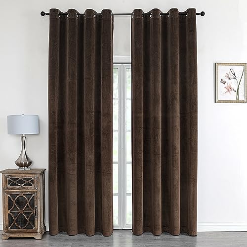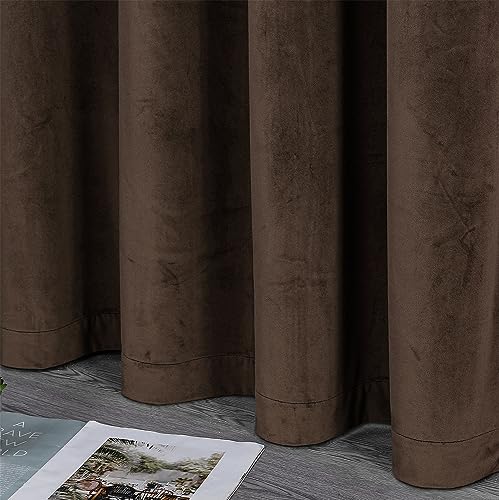 BEAUTEX Velvet Blackout Curtain with Eyelets Opaque 300 x 245 cm (Width 300 cm, Height 245 cm, Brown)