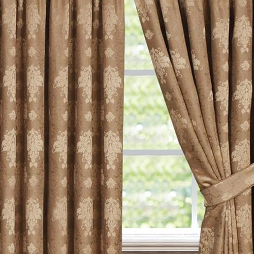 Best Linen Curtains for Living Room Readymade Fully Lined Pencil Pleat Jacquard Virginia Curtains Modern Pair Panels for Bedroom with Tiebacks (Coffee, W 90" x L 54")