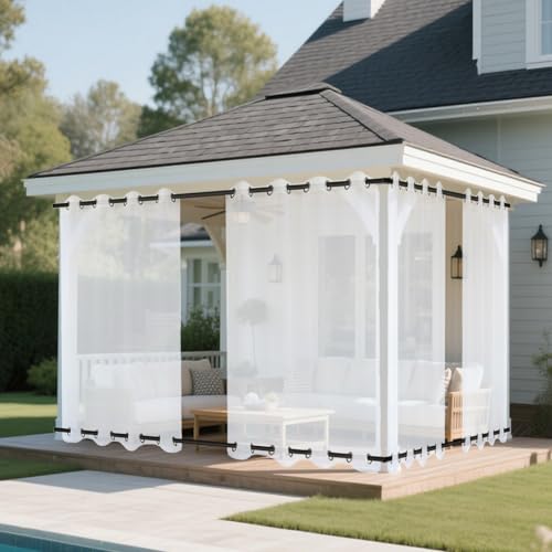 BESTORI Outdoor Sheer Curtains for Patio Waterproof Weatherproof Grommet Top and Bottom Outside Curtains for Living Room, Gazebo, Porch White, 120" W x 96" L (Pack of 1)
