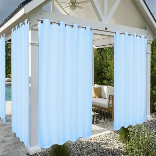 BESTORI Outdoor Sheer Curtains Waterproof Outside Voile Curtain Light Filtering Fade Resistant Grommet Top Privacy Drapes for Patio, Gazebo, Porch Blue, 132 x 244cm