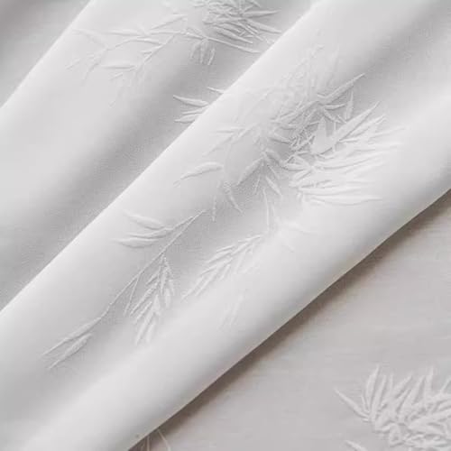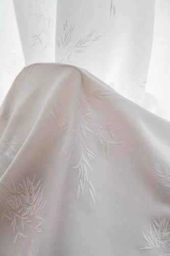 Beydodo 54 Inch Curtains Semi Blackout, Darkening Curtains for Dining Room Pinch Pleat, White Yarn with Leaves Jacquard, Polyester, 52 x 54 inch
