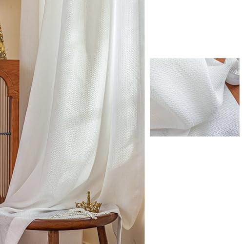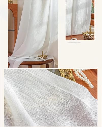 Beydodo Curtains 54 Inch Length 2 Panels For Living Room, Semi Sheer Curtains for Dining Room Pinch Pleat, White with Leaves Textured, Polyester, 52 x 54 inch