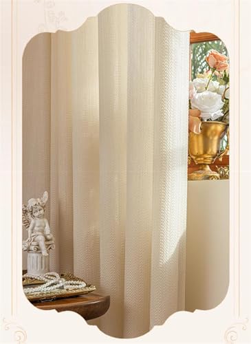 Beydodo Curtains Semi Sheers 54 Inch Length 2 Panels, Privacy Curtains for Living Room Pinch Pleat, Beige with Leaves Textured, Polyester, 42 x 54 inch