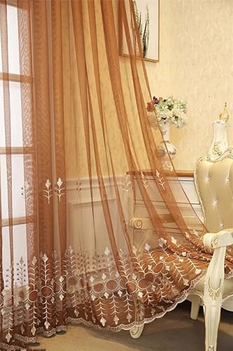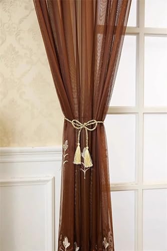 Beydodo Curtains Sheers 54 Inch Length 2 Panels, Living Room Privacy Curtains Pinch Pleat, Coffee Yarn with Floral Embroidered, Polyester, 34 x 54 inch