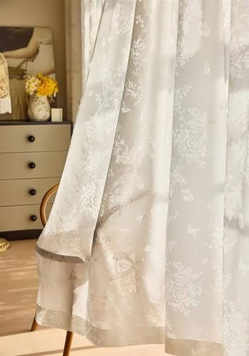 Beydodo Dining Room Curtains 63 Inch Length 2 Panels, Bedroom Privacy Curtains Pinch Pleat, with Butterflies and Floral Pattern, Polyester, 38 x 63 inch