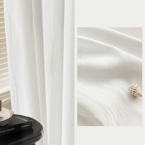 Beydodo Dining Room Curtains 72 Inch Length 2 Panels, Privacy Curtains For Windows Pinch Pleat, White Yarn with Striped Textured, Polyester, 40 x 72 inch