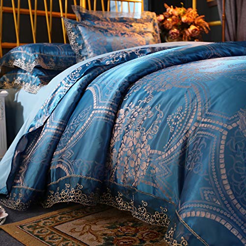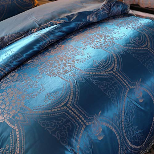 Beyeutao Jacquard Duvet Cover Double Bedding Luxury Blue Duvet Set Jacquard Bedding Set 3 PCS with Duvet Cover Set Pillowcases. (Blue, Double)