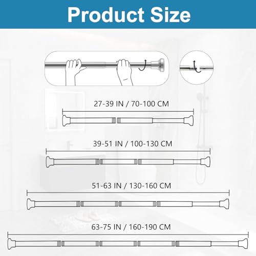- TELESCOPIC DESIGN: Bingobang shower tension rod features a telescopic design that allows it to extend from 70cm to 193cm, ensuring it can be adjusted to fit various bathroom sizes. The intuitive design makes it easy to smoothly and simply adjust to accommodate different space requirements
