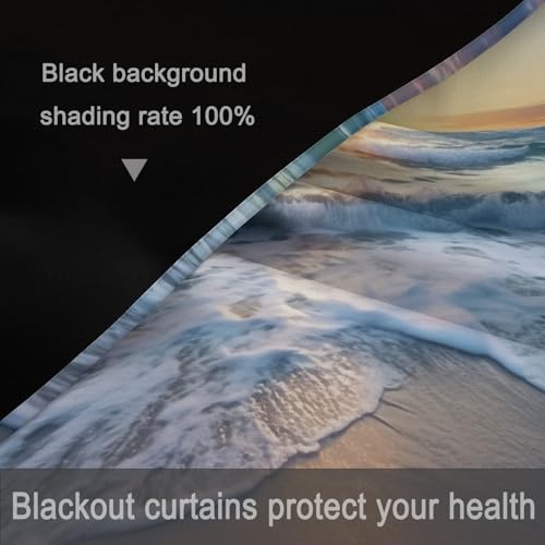 Blackout Curtains Coastal Beach Waves Sunset Theme, Khaki Thermal Insulated Noise Reducing Eyelet Curtain for Bedroom – 65 inch Opaque Drop Curtains Sets 2 Panels