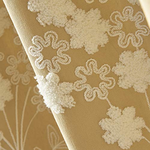 Blackout Curtains Cotton Linen Stereoscopic Flower Curtain Embroidered Pencil Pleat Curtains,for Bedroom Living Room Kids Room Kitchen,Yellow,W170xL140cm*1piece