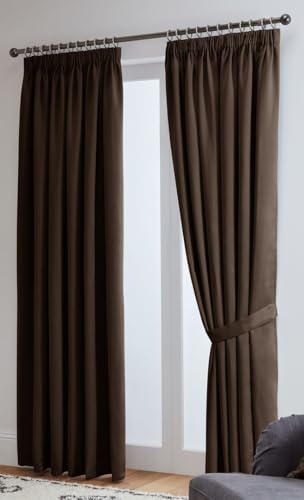 John Aird Blackout Curtains Pencil Pleat with Tie Backs (Chocolate, W 46" x L 72" (2 Panels) Thermal Energy Saving Curtains for Bedroom & Living Room
