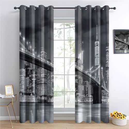Blackout Window Curtain Grey printing W 90" x L 90" (2 Panels) Decorative Window Curtain New York City Skyline for Bedroom Living Room Darkening Thermal Insulated Energy Efficient Drapes