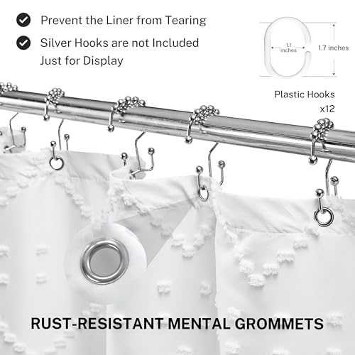 - BOHO SHOWER CURTAIN EASY TO INSTALL – our black fabric shower curtain is made of high-quality polyester fabric, ensuring durability and wear resistance. this textured shower curtain set comes with 12 c-type hooks for easy installation.