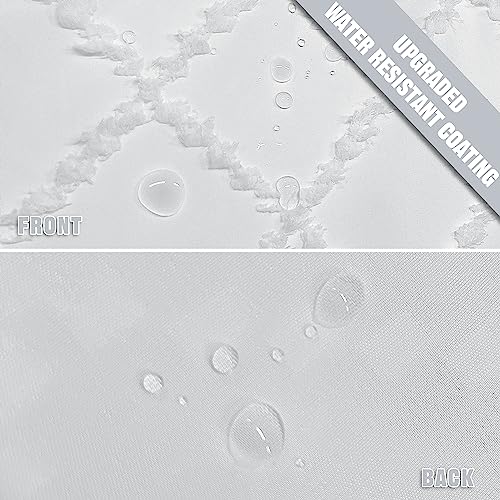 - TEXTURED SHOWER CURTAIN – We've created this shower curtain with a textured pattern to add elegance to your bathroom. The chenille woven chevron design is a white color to match the background for a neutral look.